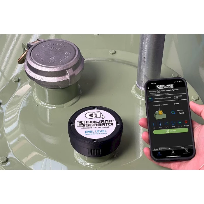 EMIL-LEVEL is an innovative laser sensor designed to remotely monitor the liquid level inside a tank with high precision and safety, transmitting data directly to a device via Cloud and a dedicated app. Its operating principle is electro-optical: thanks to cutting-edge laser technology, it provides continuous and accurate fill level readings, ensuring maximum reliability even in changing conditions.