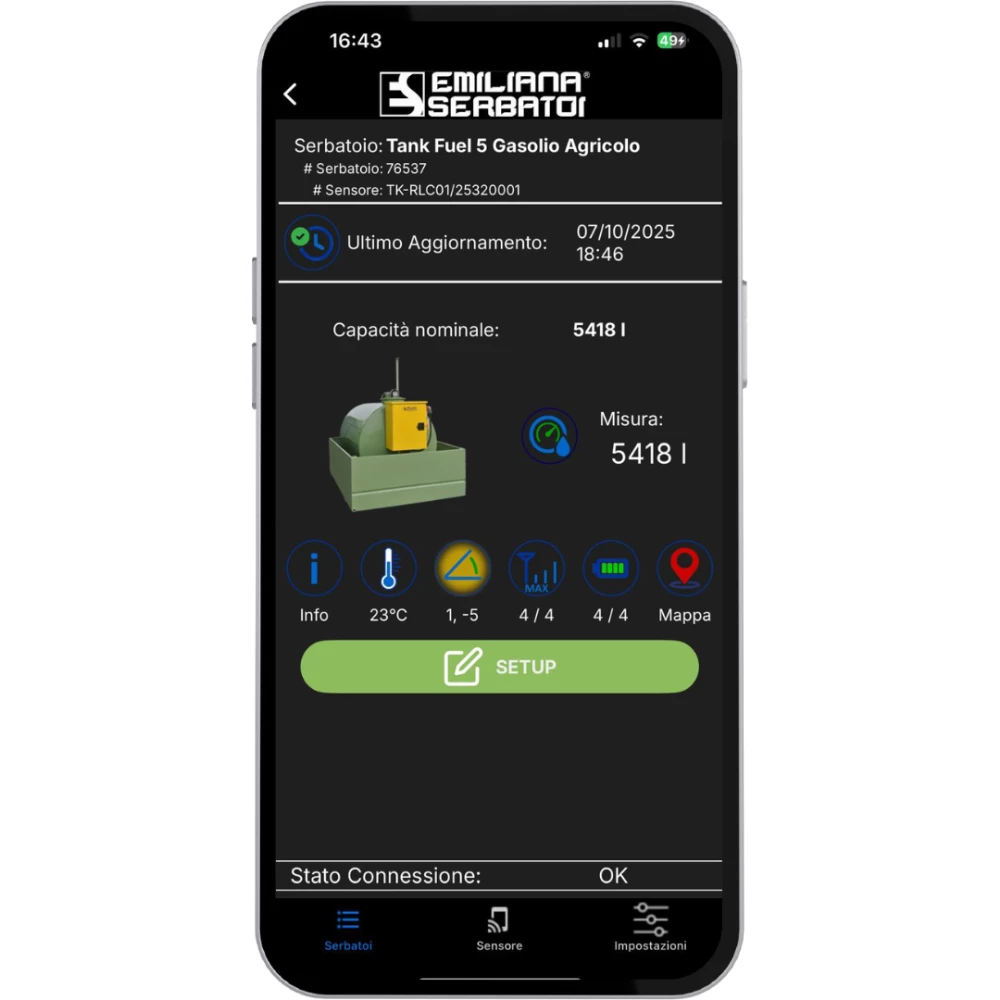Thanks to NB-IoT / Cat-M connectivity, built-in GPS, and the dedicated mobile app (available for Android and iOS), level monitoring can be done anytime, anywhere. All data is sent to the Cloud, which keeps the app updated, allowing users to check real-time operating conditions.
