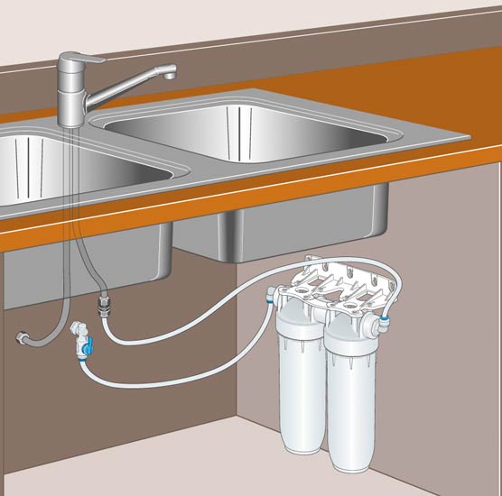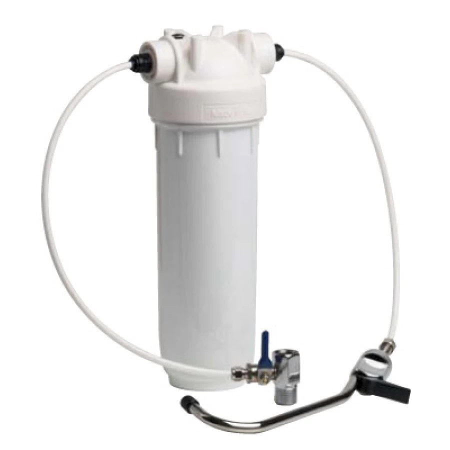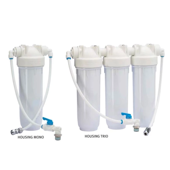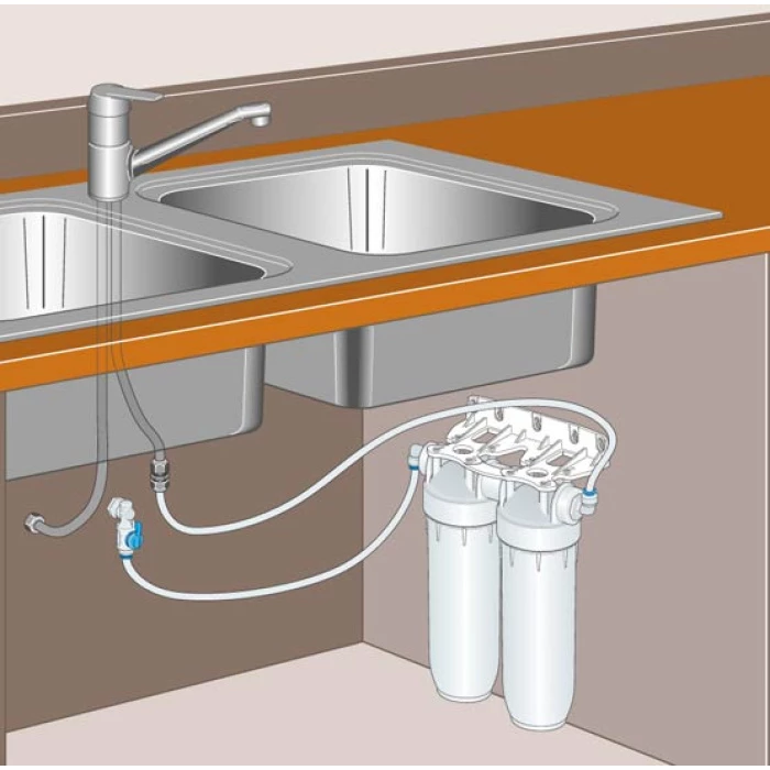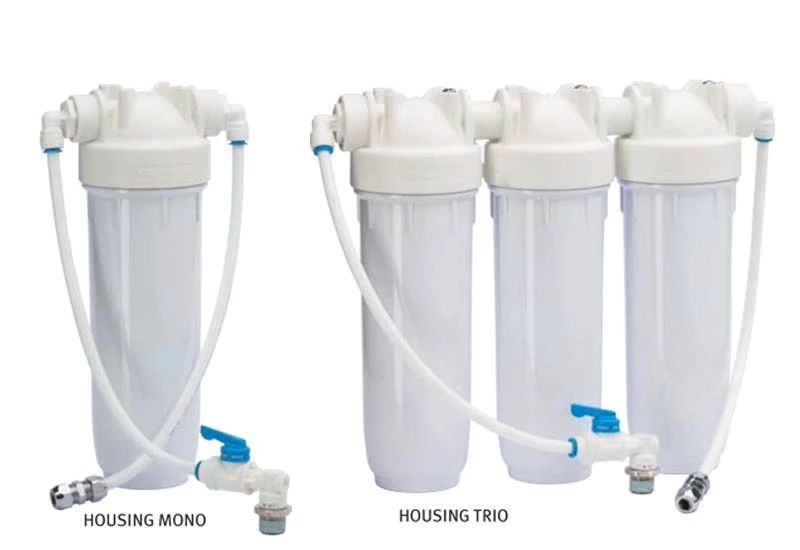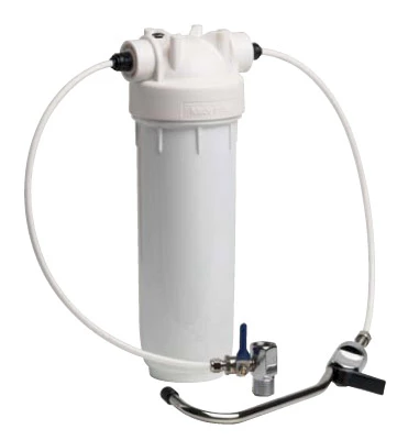 Thanks to the single head design, BRAVO DP DUO and TRIO have no need for connections nor fittings in between the housings, no work for connections and no risk of leaking. The housing head is stronger and more reliable than ever. In addition, thanks to the design, the width is dramatically reduced saving space for the installation BRAVO DP undersink filters have been designed for the production of good and pure water directly at the point of use. The filters can be easily installed under the kitchen sink, thanks to the complete set of accessories, with saving of space. The filters are supplied with a special tap, to be fitted to the sink top, dedicated to the delivery of pure water only, to be used for drinking, cooking and preparing of foods and drinks. BRAVO DP are made of completely non-toxic materials and are suitable to the use with drinking water, in compliance with the most stringent EU directives.