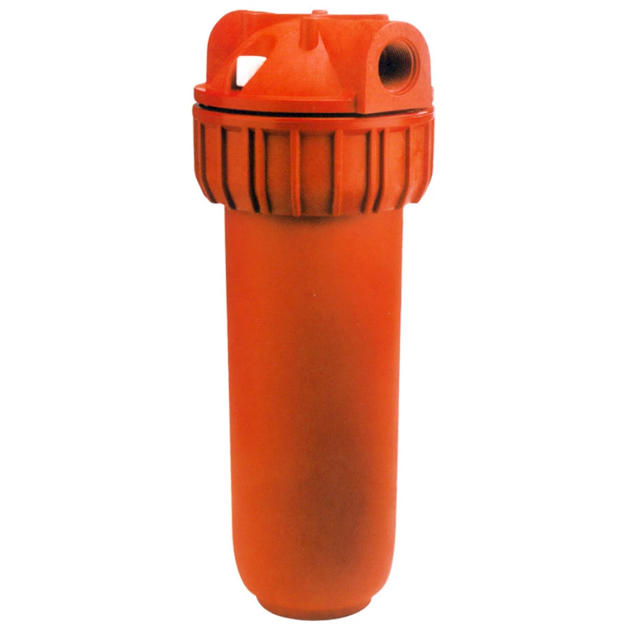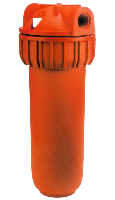 Plastic housings and cartridges with standard flat seals (DOE) for filtration of water up to 80°C. Housings with plastic in/out threads ½", ¾", 1". Height of models 10". Cartridges with filter rates from 5 to 100 micron.