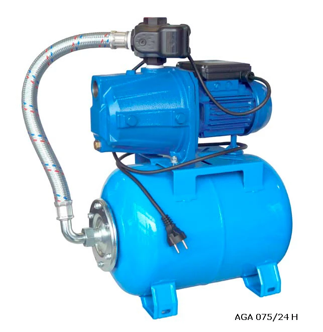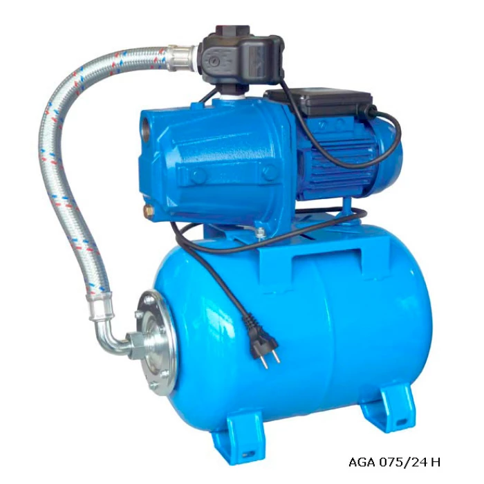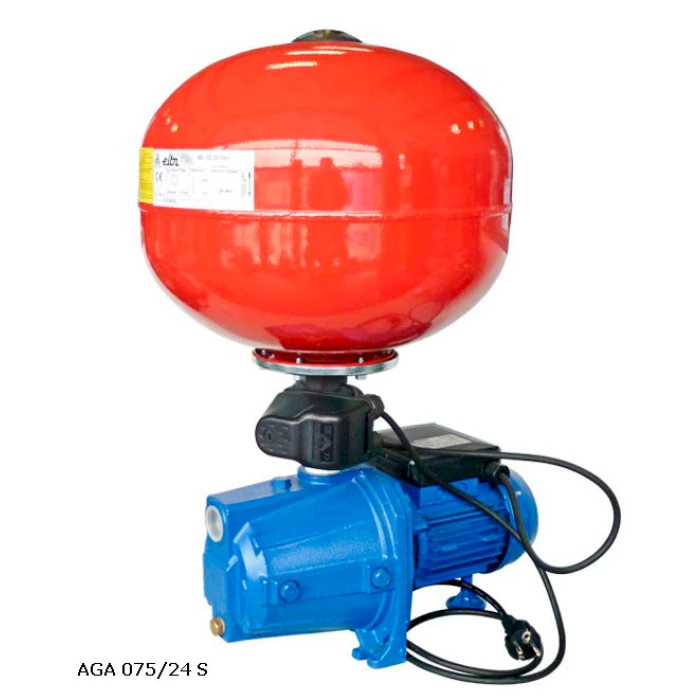 Хидрофорната система Ebara AGA 075 е готов за монтаж комплект. Състои се от помпа, разширителен съд, пресостат с манометър и мека връзка. Пресостата е настроен съгласно параметрите на помпата. Входа и изхода на хидрофора са с присъединителен размер 1". Хидрофора AGА 075 е подходящ за захранване на еднофамилни къщи и вили.
