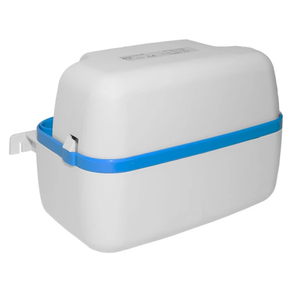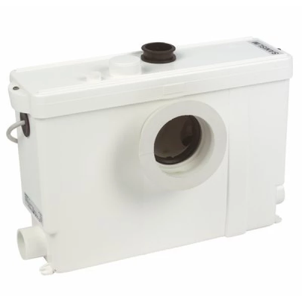 Помпена станция за отпадни води с режещ механизъм. Подходяща е за вграждане в нишата зад окачена тоалетна чиния или в специален сервизен отвор. Вертикално изпомпване: 4 метра.